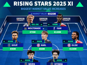 德转列2025年身价涨幅最高11人阵容:奥利塞领衔,伊萨克在列