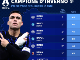 国米45分拿到意甲半程冠军,此前9个赛季半程冠军6队最终夺冠
