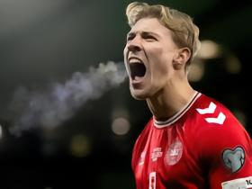 丹麦4-0北马其顿,达姆斯高破僵,伊萨克森双响