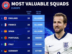 3月国际比赛欧洲国家队身价前10:英格兰超16亿第1,挪威上榜