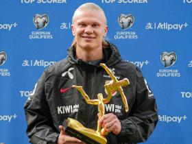 16球断层领先,哈兰德在友谊赛后领取世界杯欧预赛金靴奖杯