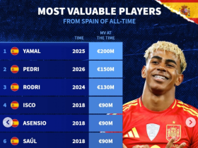 西班牙球员历史身价榜:亚马尔2亿欧第1,佩德里第2,法蒂上榜
