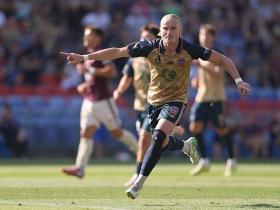 半场战报:纽卡斯尔喷气机1-0布里斯班狮吼,拉克伦-罗斯点射破门