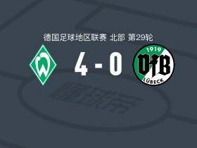 云达不莱梅二队4-0大胜吕贝克,萨法-耶尔德勒姆、韦斯利-阿代破门
