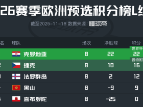世欧预L组结局:克罗地亚出线,捷克附加赛,法罗群岛出局