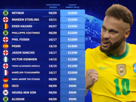 德转列参加过U17世界杯历史身价前20:内马尔第1,斯特林第2