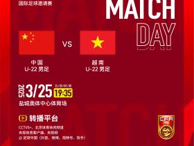 官方:CCTV5+等将转播中国U22vs越南U22的比赛