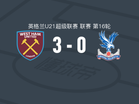 西汉姆联U21 3-0大胜水晶宫U21,普雷斯顿-菲伦、刘易斯-奥福德破门