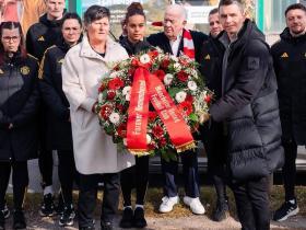 缅怀先辈,曼联女足在欧冠客场赛后前往慕尼黑空难纪念碑献花