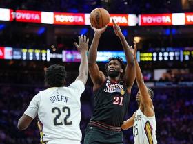 76人124-114鹈鹕取3连胜,恩比德40+11,乌布雷19+10