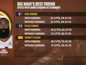 中锋的“奶妈”,美媒晒三大中锋数据,与哈登做队友后全方面提升