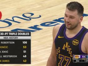 东契奇生涯第53次单场得分30+完成三双,NBA历史第二