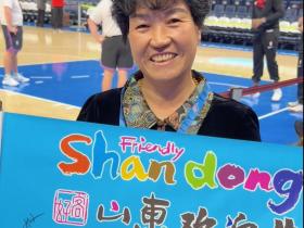 来自家乡的支持,山东阿姨手持“好客山东欢迎您”条幅获杨瀚森签名