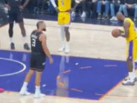 又见詹龙对决,詹姆斯罚球时狄龙干扰,被判提前进线违例