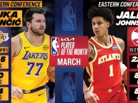 官方:东契奇、杰伦-约翰逊当选新一期月最佳球员