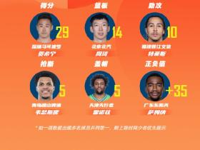 CBA第八轮最佳阵:阿不都沙拉木,萨林杰,罗凯文,贺希宁,孙铭徽入选