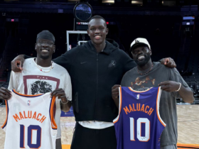 南苏丹男篮的聚会,奥莫特和沙约克现场观看10号秀马鲁阿奇比赛
