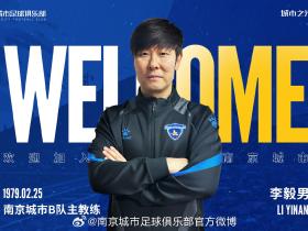 官方:李毅男出任南京城市B队主教练,有多年低级别执教经验