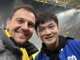 又跟波尔一起看球了,樊振东现场观看多特vs国米的比赛
