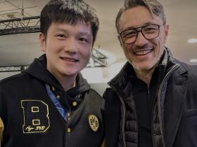 樊振东晒出与科瓦奇合影:看到皇马和多特都输了令人心痛