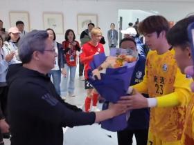 南通市委书记祝贺南通队晋级“苏超”决赛,并为两位门将献花